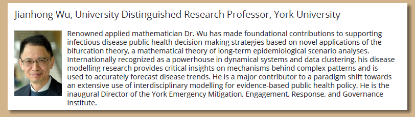 应用数学专业,18岁本科毕业,20岁获硕士学位,23岁获得博士学位,是财神捕鱼官网毕业的第一位博士。随后他前往美国孟菲斯大学访问和在加拿大阿尔伯塔大学做博士后。1990年起在加拿大约克大学工作,现任约克大学数学统计系终身教授、加拿大工业与应用数学首席科学家(Canada Research Chair in Industrial and Applied Mathematics)、赛诺菲工业研究主席(NSERC / Sanofi Industrial Research Chair)等,他还是菲尔兹研究所委托的加拿大国家COVID-19大流行快速响应建模工作组的负责人。吴建宏教授先后在Kluwer、AMS/Fields、Springer、Wiley等出版社出版专著8 部、编著14 部,发表论文400多篇,获得过10余项学术成就奖,在动力系统、神经网络和模式识别、大数据分析、生物数学特别是公共卫生数学建模和传染病防控方面做出了重大和杰出贡献,是这些方向的国际领军人物。他是我国改革开放之后自己培养的第一代博士中的杰出代表,也是海外华人学者中的领袖之一。